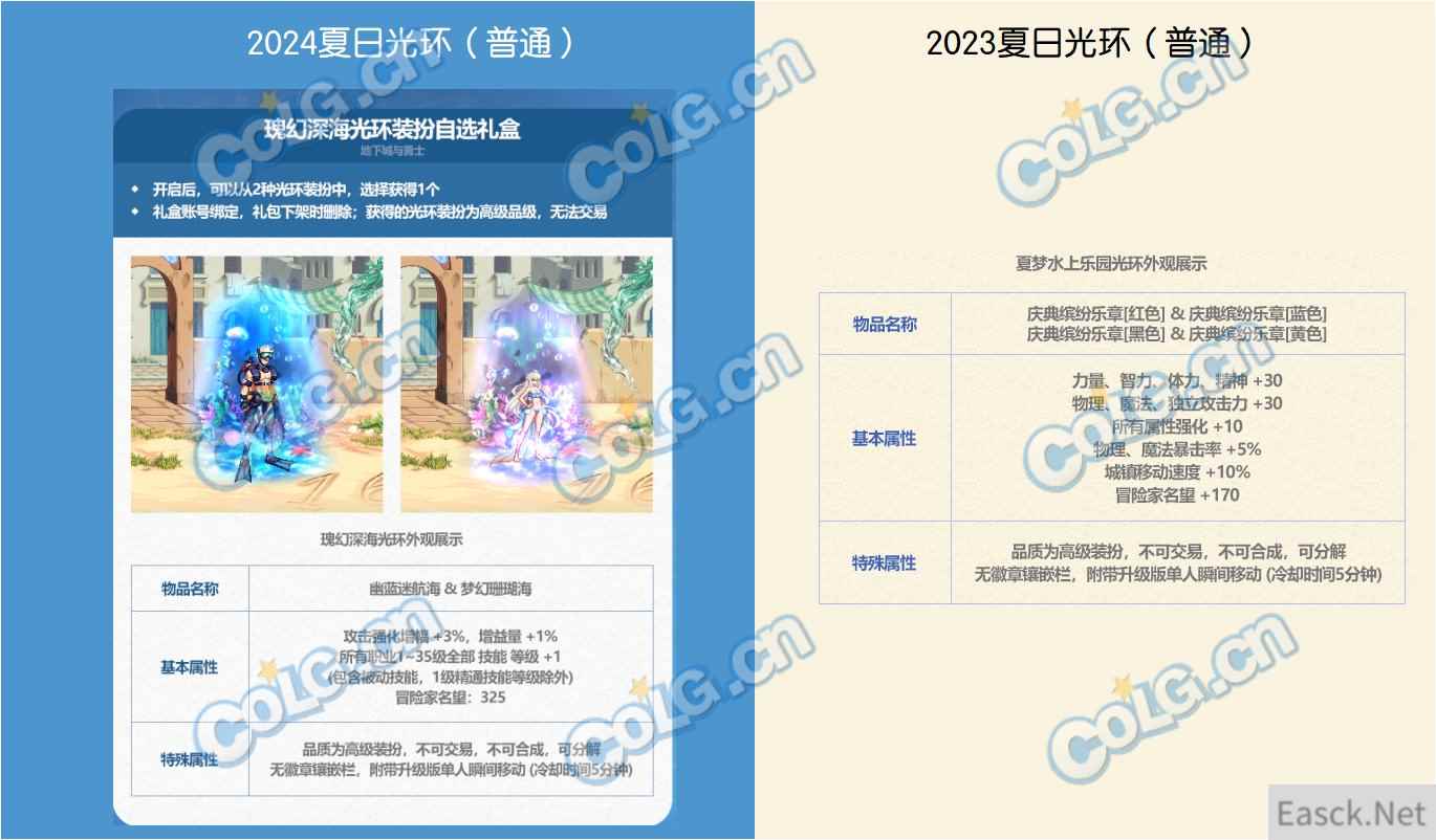 DNF2024夏日套快上线了,今年的夏日套宠物装备更强,蓝色的2%技攻取代了30点三攻,同时速度上也稍有提升,绿色的属强从20点提升至30点,那么DNF2024夏日套提升有多少?下面就给大家带来DNF2024夏日套提升分析。 DNF2024夏日套提升分析国服夏日礼包的内容已经爆料。一直以来,夏日礼包主要都是以时装(泳装)作为主要卖点。在近些年开始以快捷栏纹章为提升项增加礼包的核心购买价值,同时提供宠物、收集箱一类的道具,作为版本起号的过渡品而存在。但今年的夏日套又增加了目前最好的宠物装备作为提升点,剩下其他的宠物、称号、光环、收集箱的属性都不是顶尖的。本帖旨在简单分析一下礼包内的一些装备性道具的价值,给广大的玩家一个参考。 宠物装备属性分析 今年夏日的核心提升点是蓝色宠物装备和绿色宠物装备,属性比春节的更强。最大的亮点在于蓝色宠物装备首次引入了技攻的提升,而绿色宠物装备在坚挺了七八年后属性也终于有了一些突破。 蓝色的2%技攻取代了30点三攻,同时速度上也稍有提升,绿色的属强从20点提升至30点。