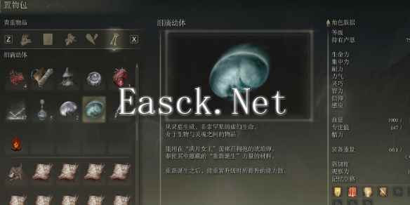 艾尔登法环中的泪滴幼体这个道具可以用来洗点,重置能力值,在黄金树幽影dlc的幽影之地中也能获取到一些泪滴幼体,dlc泪滴幼体的位置如下。