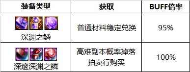 4.BUFF换装 深渊之鳞为魔界哈林地区代号:希望副本产出的装备,也可通过110版本材料霜色水晶兑换 深邃深渊之鳞为110版本高级地下城或者英豪模式地下城掉落的可交易新装备