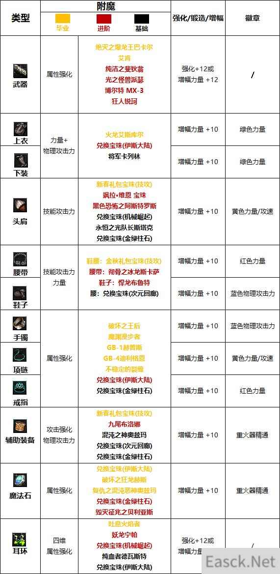 DNF神界版本快开启了,在新版本有更高难度的副本要打,要想伤害高人一等,附魔就要完美,比如女大枪,那么DNF2024女大枪最强毕业附魔怎么选?下面就给大家带来DNF2024女大枪最强毕业附魔选择。 DNF2024女大枪最强毕业附魔选择1.装备打造