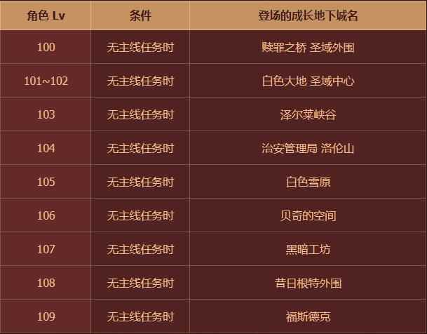 * 成长地下城也会掉落105级史诗装备。 * 100Lv圣域外围根据阵营的选择,各提供1个副本
