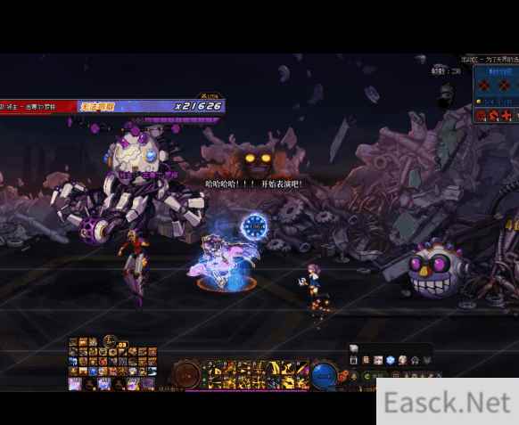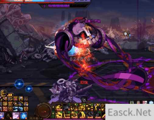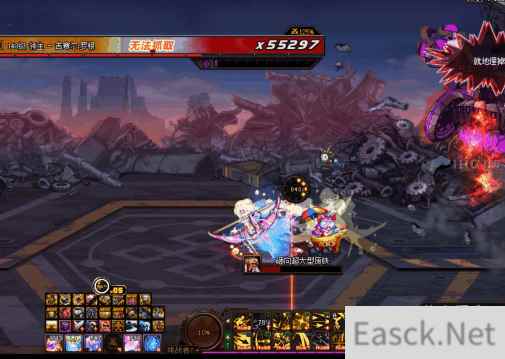 读条过半后BOSS结束废铁投掷,此时需要玩家清理一条通道出来抵达另一侧的安全区域,一般过程会击飞大量废铁 读条结束后BOSS破防