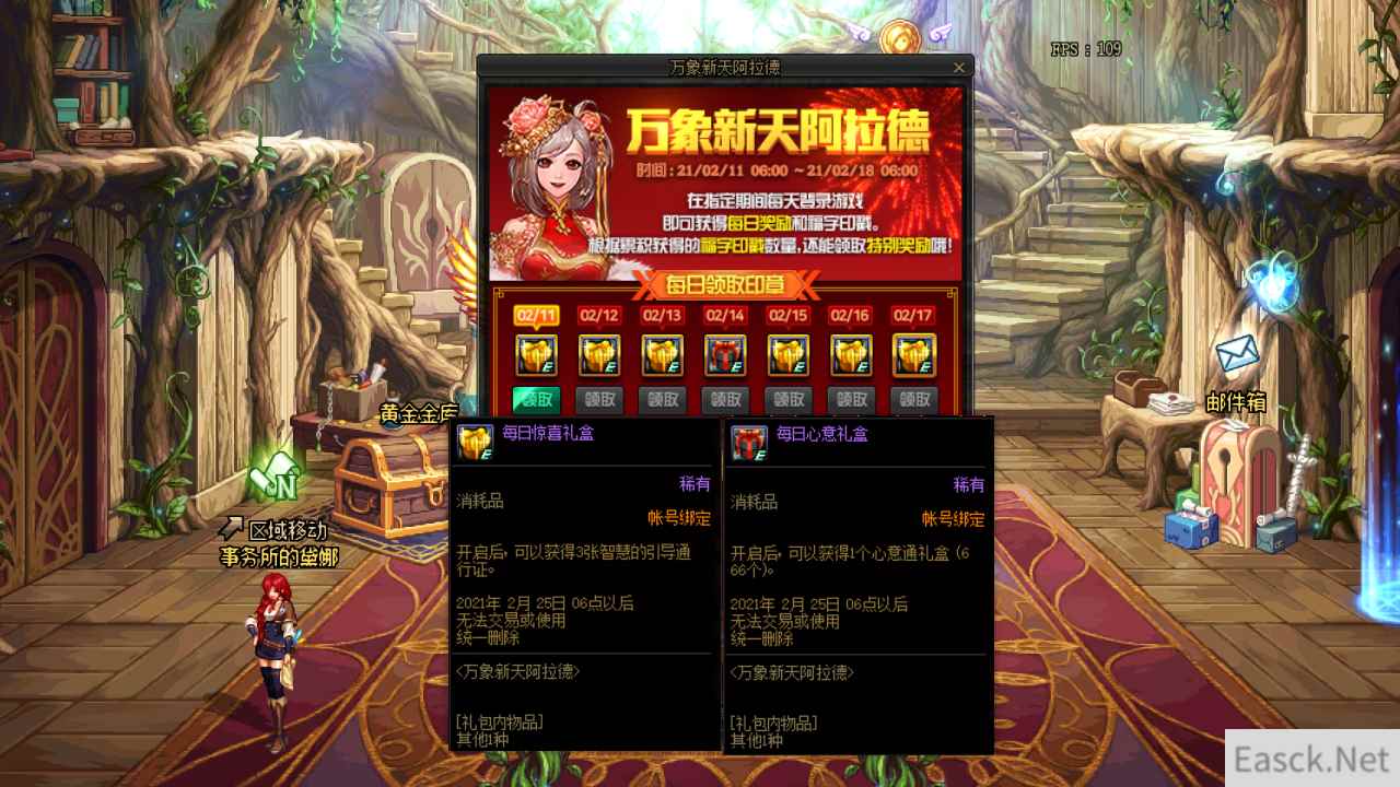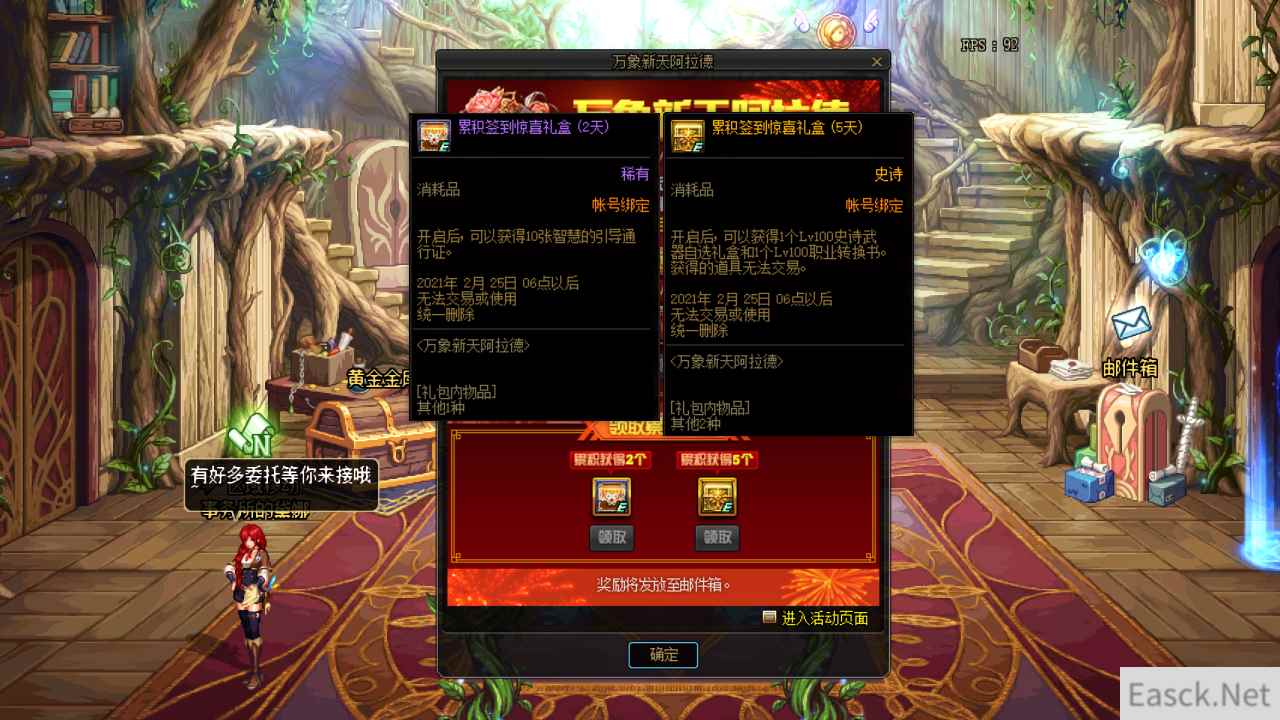 DNF万象新天阿拉德活动攻略万象新天阿拉德是除夕到初六的7天签到活动,每天签到给的是3张深渊通行证,但是在2.14当天给的是666个心意通礼盒,毕竟是情人节来的。累积签到2次即可获得10张通行证,而累积签到5次,即可获得一把100级史诗武器自选礼盒和一个100级角色可以使用的职业转换书。
