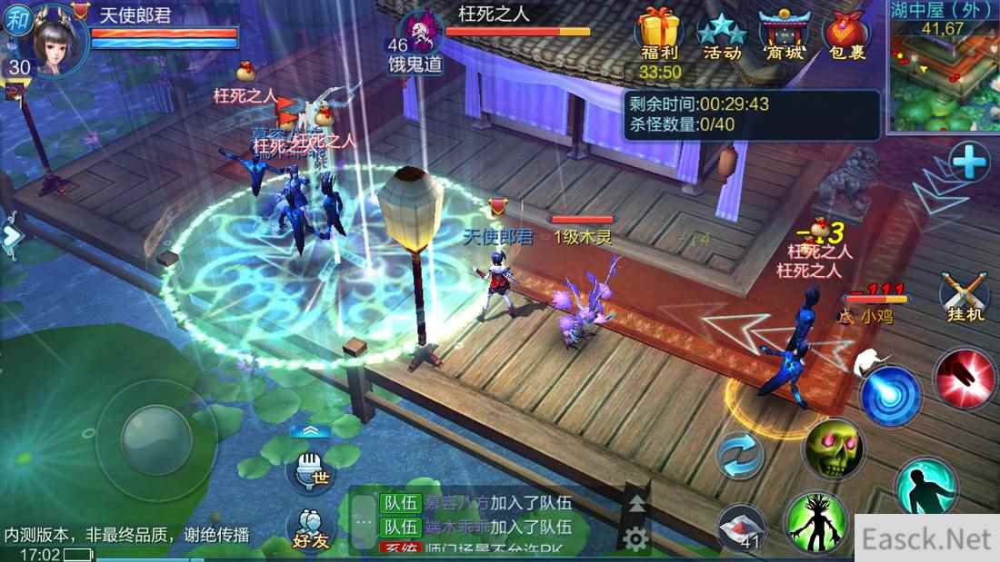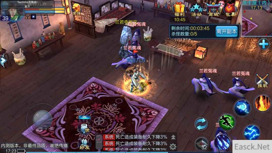 4、意外惊喜 在完成任务时,如果天降好运,则可能进入惊喜副本。 目前开放的惊喜副本有两种:湖中屋(内)、桃花冢底。 湖中屋(内) 离开湖中屋(外)时,湖中屋(内)中,封印着姥姥害死的兰若冤魂,他们化为你和队友们的形象,企图迷惑你与他交换身体,好逃出湖中屋,千万小心! 进入场景后,队长需点击湖中屋内的兰若寺咒文,即可将幻象打破,现出他们的本来面目。击杀这些兰若冤魂,可获得大量经验! 不过,湖中屋(内)现世的时间仅有5分钟,可要抓紧时间击杀所有幻象!