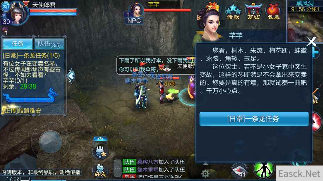 若想要中途放弃任务,只要离开当前队伍,你的一条龙任务就会被自动放弃。队长也可直接在任务面板中,放弃本轮任务。 2、进入副本 领取任务后,队长点击任务追踪可以直接寻路到入口NPC处,点选NPC,即可进入相应的任务副本。而想挂机的玩家,只要跟随队长就可以啦!