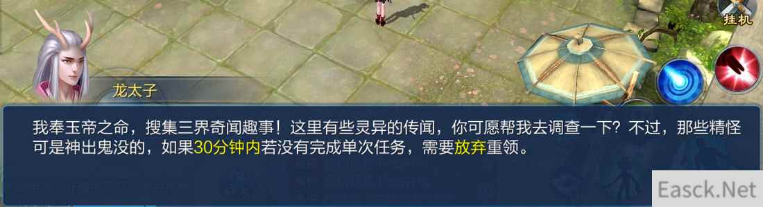 与龙太子对话后,即可领取[日常]一条龙任务。每轮包含5次子任务,除每轮第一次任务需至龙太子处领取外,其余均可以自动交接,中途无需回到金陵。