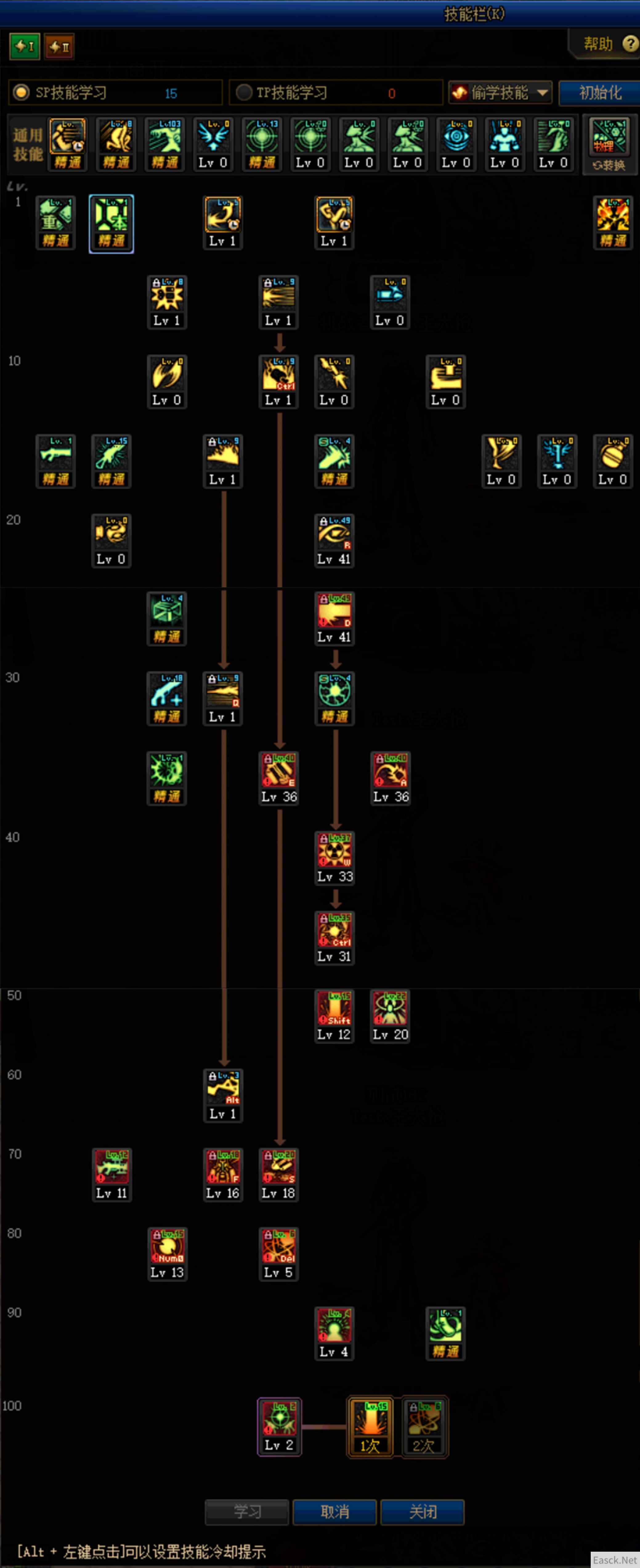 男大枪属于爆发输出型职业,且其一次觉醒是瞬发脱手技能,大技能在高爆发的同时拥有较长CD即存在技能真空期,因此在大输出节能外需要搭配高输出短CD的小技能穿插过渡。 首先点满被动提升和Buff技能,其中40级以上技能除等离子放射器点1级做控制技能之外,其它技能需要全部点满,这部分技能也是男大枪的主要输出技能,普遍拥有较长CD,40级以下技能选择点满榴弹发射器以及FM-92刺弹炮即小刺弹。 其中100级被动觉醒之抉择选择提升一绝的输出能力。 由于量子爆弹伤害高,CD短,同时在护石量子风暴的强化下,拥有大规模的AOE伤害用来清怪,因此剩余技能选择需要补充清小怪的技能和短CD的穿插输出技能,男大枪激光炮和小刺弹作为老牌输出技能,手感和伤害表现均为不错,所以推荐点满,剩余SP点选择点反坦克炮或者聚焦喷火器,笔者这里推荐反坦克炮,优点是CD短,施法快,对单个漏网小怪有较高单体输出能力。 TP首先选择高输出高爆发技能:大刺弹、量子爆弹和X-1压缩量子炮,其次较短CD和较强AOE的榴弹发射器选择点满,剩下选择激光炮和小刺弹,可按习惯选择点满一个,笔者推荐CD较短的激光炮,提高小怪的清理能力。