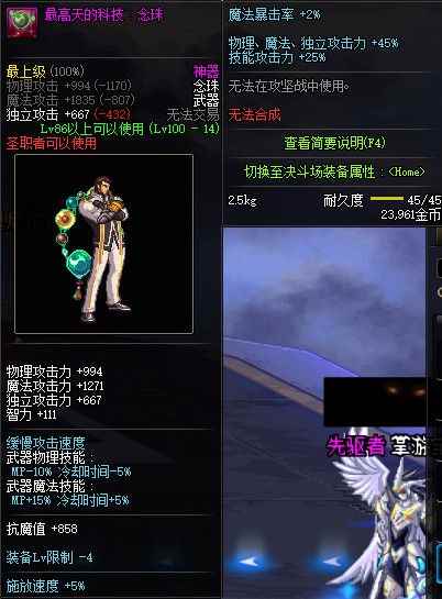 装备属性: 物理攻击力+994 魔法攻击力+1271 独立攻击力+667 智力+111 抗魔值+858 |