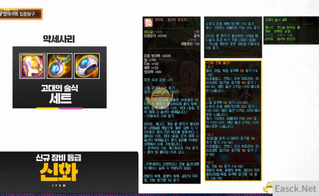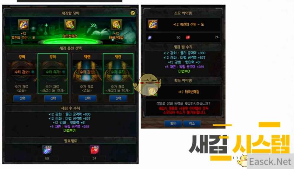装备情报 新装备【智慧的产物】史诗可交易,未来获取装备会更有趣。原有装备也不会废弃,可升级,会保值,展示图为+12普雷武器刀+新装备刀→+12新装备刀,刻印系统。 装备打造可互相转移,展示中为+10 A甲→+10B甲。