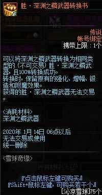 在推荐地下城中击败雪人哥布林,每消耗20点疲劳值可以遇见1次雪人哥布林,每天最多可以遇见3次。击败雪人哥布林时可以获得沁凉雪球,沁凉雪球可以在雪人圣职者处兑换奖励。 DNF沁凉雪球有什么用? 在雪人圣职者的商店中可以使用沁凉雪球兑换深渊之鳞套装武器自选礼盒、胜·深渊之鳞武器转换书、深渊之鳞装备自选礼盒、黑暗之眼灵能碎片礼盒、雪人圣职者的祝福药剂等物品。