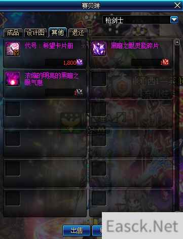DNF地下城与勇士变异的黑暗之眼灵能碎片作用一览。2019五一版本开启了,新的副本地图代号希望上线,而新版本当中有道具变异的黑暗之眼灵能碎片,该道具究竟该怎么获取以及作用有哪些呢?一起来看看吧! DNF变异的黑暗之眼灵能碎片作用一览 可以使用该道具在NPC赛贝琳处兑换(不可交易)胜•深渊之鳞武器转换书和浓缩的明亮的黑暗之眼气息。