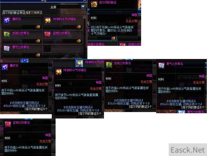 2、当人物身上有斗气存在时,玩家激活斗气技能获得霸体、减CD等特效,在激活过程中击杀怪物还能延长特效时间。 3、艾肯地下城奖励也很不错。主要奖励为90级的传说装备。其中必须要注意的是艾肯地下城是单人副本,每次需要8点疲劳,难度和魔界裂缝差不多,还有就是该地下城只能前进,如果不小心过图进入下一个房间是无法返回的。 4、艾肯副本里的传说装备有4个品级,分别为斗气装备、战争之斗气装备、狂暴之斗气装备和寂灭之斗气装备。艾肯传说装备可以通过材料来进行改造。改造材料在修亚NPC处可以兑换获得。魔纹石为升级套装所需物品,纯净的斗气浓缩石可以赋予艾肯传说装备套装属性,其余的3个为改造斗气装备所需材料。