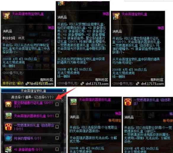 DNF2019春节套礼包中有很多宝物礼盒,除了礼包自带礼盒之外,多买多送也会赠送不少礼盒。那么这些礼盒价值怎么样呢?下面就为大家带来DNF2019春节套宝物礼盒介绍。 春节套宝物礼盒价值一览