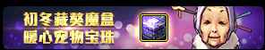 闪耀的宠物宝珠自选礼盒开启后,可以选择获得1个闪耀的宠物宝珠。 温馨提示:本次加入闪耀的宠物宝珠自选礼盒获取概率为0.5%。礼盒本体与宝珠均为账号绑定,将于2018年12月13日删除。 闪耀的宠物宝珠 (力量)力量+12 闪耀的宠物宝珠 (智力)智力+12 闪耀的宠物宝珠 (体力)体力+12 闪耀的宠物宝珠 (精神)精神+12 闪耀的宠物宝珠 (攻击速度)攻击速度+1% 闪耀的宠物宝珠 (施放速度)施放速度+1% 闪耀的宠物宝珠 (移动速度)移动速度+1% 闪耀的宠物宝珠 (物理攻击)物理攻击+6 闪耀的宠物宝珠 (魔法攻击)魔法攻击+6 闪耀的宠物宝珠 (独立攻击)独立攻击+10 闪耀的宠物宝珠 (物理暴击)物理暴击+1% 闪耀的宠物宝珠 (魔法暴击)魔法暴击+1% 闪耀的宠物宝珠 (火属性强化)火属性强化+3 闪耀的宠物宝珠 (冰属性强化)冰属性强化+3 闪耀的宠物宝珠 (暗属性强化)暗属性强化+3 闪耀的宠物宝珠 (光属性强化)光属性强化+3 |