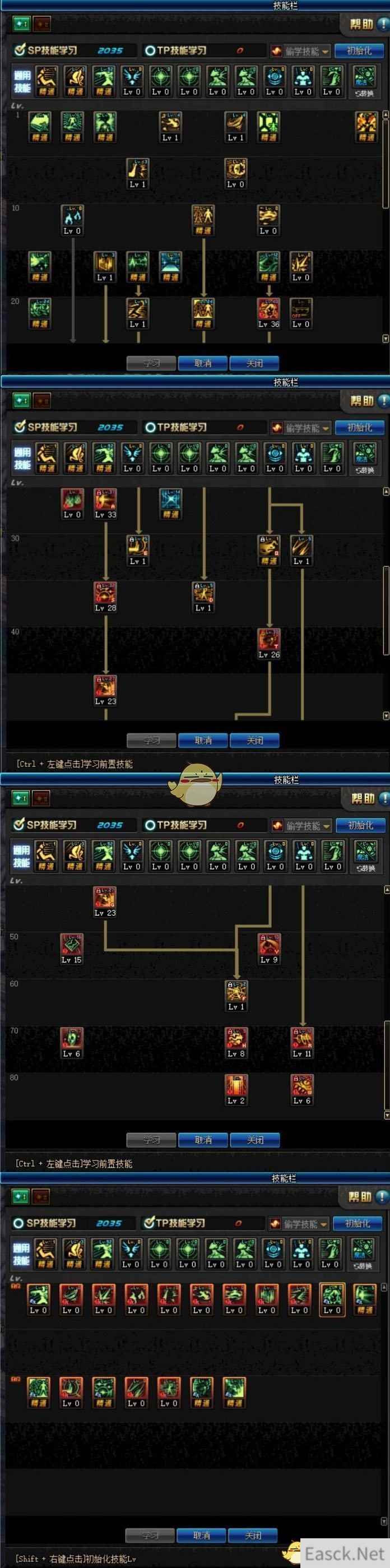 常规加点,仅供参考。另外解释一下万华镜,蜂群,激光,磁场等的取舍,在修炼场进行续航测试时明显磁场加激光在CD和伤害总体占优,蜂群不多解释大加强必满,万花镜有所增强,但实际效果仍然不建议,不过如果用的顺手可以点不会很亏,另外在伤害溢出时点鞭子较好,而需要续航伤害时鞭子点1选磁场较好。剩余SP点可自行分配,其余技能最优均为参考上图。 |