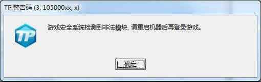 错误码:(3,17500000,x) ,(3,0,xx),(3,1000,xx),(3,1001,xx),(3,1003,xx),(3,1004,xx),(3,1005,xx), (3,1007,xx),(3,1009,xx),(3,1016,xx),(3,1018,xx),(3,1019,xx),(3,1020,xx),(3,1021,xx),(3,1022,xx),(3,1024,xx) 处理建议:请勿使用非法工具修改游戏,重启机器后再试。