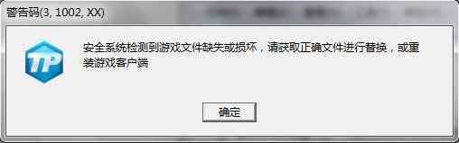 错误码:(3,1002,xx) 处理建议:安全系统检测到游戏文件缺失或损坏,请获取正确文件进行替换,或重装游戏客户端。