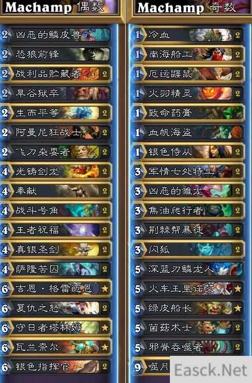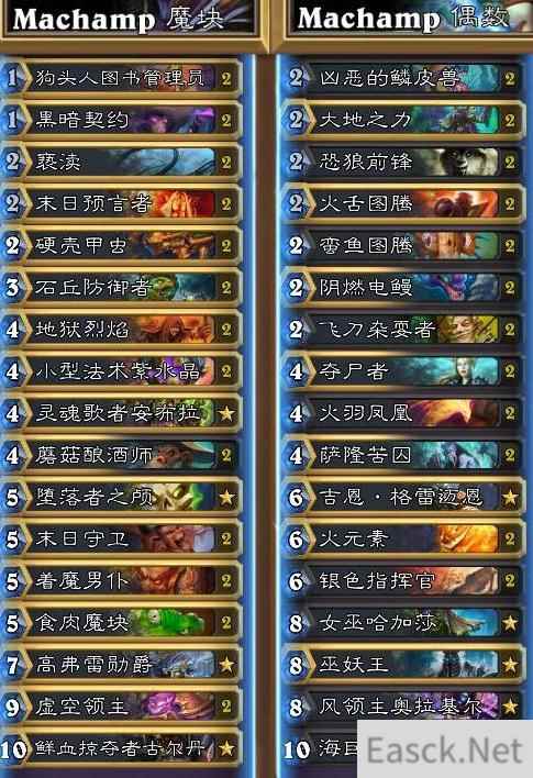 在炉石传说亚服HCT第一赛季预选赛期间,Machamp使用了奇数、偶数、魔块等卡组,为大家带来了一场精彩的视觉盛宴。下面就跟小编一起来看看这些卡组搭配吧。
