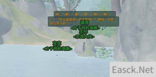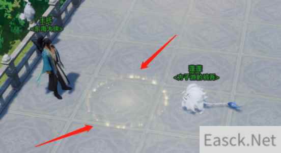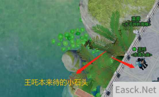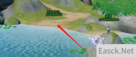 3.站在王吒处飞往左上的大道路时交互湖边的 “王吒的标记”,并跟随脚印找到 “蓬蓬”
