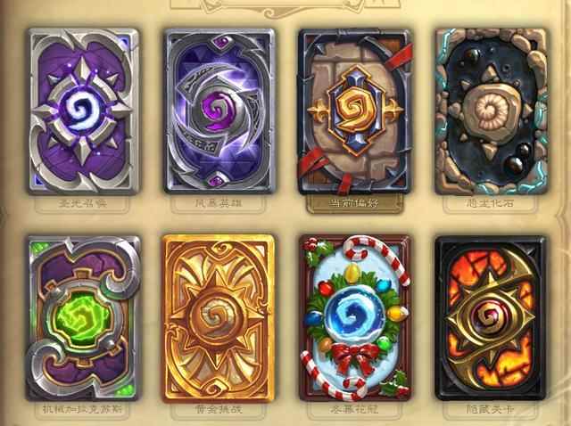 虽然这个功能对九金头的我没有什么作用(滑稽) 但是炉石传说可不仅仅只有打天梯的玩家,还有很多玩家只爱玩竞技场,但是金色英雄的诱惑又很大,所以对于他们来说,这是一件非常烦心的事情。 好在官方终于也意识到了这一点,在新版本中,竞技模式中赢得的对战将计入你所选择英雄的总胜场数,让你可以更轻松地获得梦寐以求的500场胜利。 随机卡背图案选项 卡背是炉石传说中必不可少的一种元素,从2014年4月份第一个正式赛季的奖励卡背——潘达利亚开始,炉石传说的卡背系统就一直在逐步完善,并运转至今。 同样也是从2014年4月开始每个月都会推出新的月卡背也是炉石传说中占比最大的一种卡背。除此以外还包括预购拓展包与冒险模式卡背、购买暴雪其他游戏赠送的卡背、购买英雄皮肤卡背、运营活动卡背、电竞赛事相关卡背等。