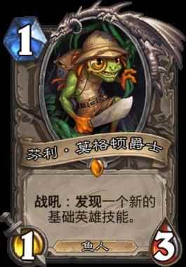 打法和奇数贼相似,卖脸解场,随从打脸,在手胡的情况下,我们可能四费就场上3-4个怪,加一把2-3攻的刀,一般在5-6费解决战斗,越往后拖我们胜利的希望越渺茫。 单卡解析 【芬利·莫格顿爵士】没有可以不要,但是有最佳,在南海船长未上手的情况下,1-3的身材是我们卡组中一费的最好身材,一费拍下去相当于拍个厄运鼹鼠,我们在抢脸铺场的情况下,基本用不到技能,所以进行更换是最好的,猎人的射箭和法师的火冲最佳,射箭是极致抢脸,火冲可以用来点小怪解场或养我们的暴乱狂战士。术士的嘬一口和盗贼的转刀为次佳,嘬一口在后期我们陷入抽一打一的情况下可以迅速过牌找冲锋随从或武器去完成斩杀如果这四个都没碰到,那随便选一个吧……问题也不大。