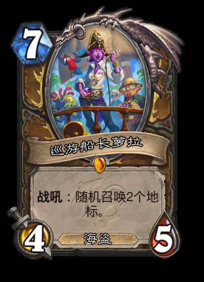 炉石传说新扩展包胜地历险记快上线了,胜地历险记带来了新的机制,新增了一些卡牌,比如巡游船长萝拉,那么炉石传说巡游船长萝拉怎么样?下面就给大家带来炉石传说巡游船长萝拉卡牌图鉴。 炉石传说巡游船长萝拉卡牌图鉴德鲁伊传说随从 巡游船长萝拉 7费4/5 海盗 战吼:随机召唤2个地标。 (战士可通过携带德鲁伊游客加入套牌)