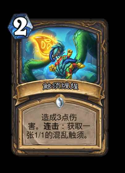 炉石传说新扩展包奥杜尔的陷落快上线了,奥杜尔的陷落带来了新的机制,新增了一些卡牌,比如触须缠握,那么炉石传说触须缠握怎么样?下面就给大家带来炉石传说触须缠握卡牌图鉴。 炉石传说触须缠握卡牌图鉴潜行者普通法术 触须缠握 2费 造成 3点伤害。连击:获取一张1/1的混乱触须。