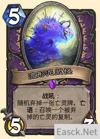 术士史诗随从 流形泥浆怪 5费5/3 战吼: 随机弃掉一张亡灵牌。 亡语:召唤一个被弃掉的亡灵的复制。 |