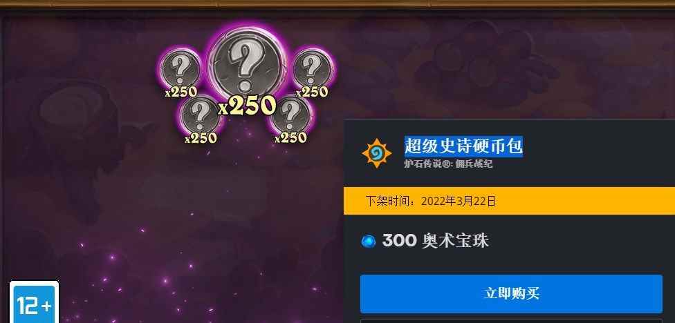 300奥术宝珠,下架时间:2022年3月22日 史诗级的硬币藏品 超级史诗硬币包内含5名随机史诗佣兵的各250枚硬币。使用这些硬币可以制造新的佣兵,或是强化现有的佣兵。 7、黑龙军团合集 2680奥术宝珠 8、酒馆战棋终结特效-砰砰轰击 30符文石 9、酒馆战棋对战面板―机械工坊 60符文石 |