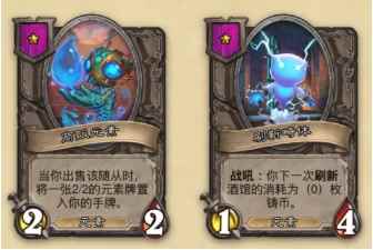 女王一本流最好是在有元素的局使用,因为1本的两个元素,1个刷新畸体,能免费刷新酒馆,另一个理财元素不占格子,还能触发两次BUFF。用元素来养其余4个种类的随从再合适不过了。