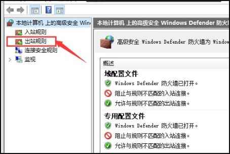 6、然后在弹出界面点击左侧的【出站规则】