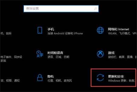 2、在设置面板点击下方的【安全和更新】