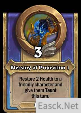 技能1:保护祝福(神圣) (1级)为一个友方角色恢复2点生命值,并使其在本回合中获得嘲讽。 (2级)为一个友方角色恢复4点生命值,并使其在本回合中获得嘲讽。 (3级)为一个友方角色恢复6点生命值,并使其在本回合中获得嘲讽。 (4级)为一个友方角色恢复8点生命值,并使其在本回合中获得嘲讽。 (5级)为一个友方角色恢复10点生命值,并使其在本回合中获得嘲讽。