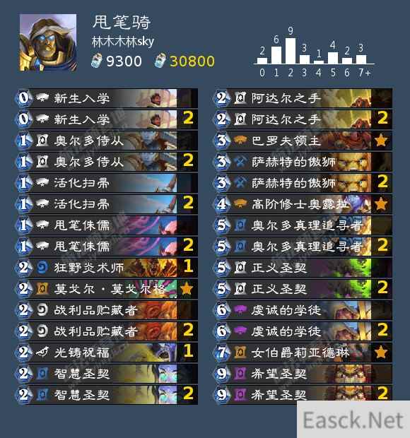 AAECAZ8FBvYHipoD/LgDhMEDk9ADw9EDDPsBlaYDyrgD/bgD6rkD67kD7LkDysEDlc0Dns0Dn80DwNEDAA== 可以说,甩笔骑是一套近乎完美的节奏卡组,唯一的弱点是缺爆发,缺展开,在面对防战和牧师的时候劣势太大。 |