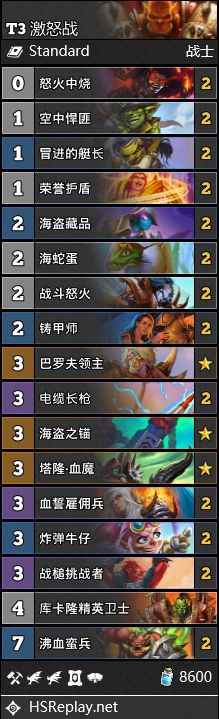 炉石传说9月标准激怒战卡组怎么组是很多这个职业的玩家都非常关心的一件事,这次的9月天梯环境基本没怎么大变,还是那些卡组比较强势,来看看9月标准激怒战卡组介绍。 《炉石传说》9月标准激怒战卡组攻略
