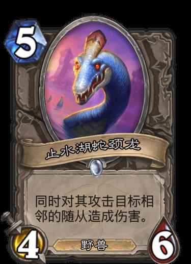 炉石传说是一款非常受到玩家喜爱的游戏,近日新版本通灵学园即将上线,目前官方透露出一张中立新卡,名叫止水湖蛇颈龙,很多玩家都好奇这张卡片的效果是什么?下面一起来了解下吧!