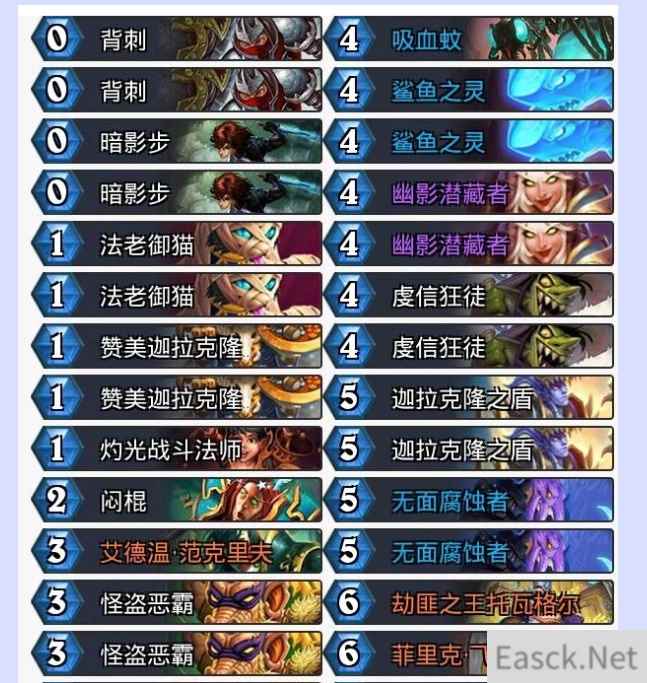 潜行者在新版本中,得到了jk和飞刺这两张强大的橙卡,而祈求贼也一跃成为了天梯中的T1卡组。 这套卡组拥有着超强的解场,过牌以及斩杀能力,所以在天梯中少有天敌。 虽然主要的斩杀手段火车王退了环境,但是仍然能够凭借着前期出色的解场能力,和后期靠jk技能拼资源进去当前环境的T1。 只不过这套卡组上手有一点难度,想要用这套卡组上分的小伙伴们需要勤加练习。 宇宙猎卡组:
