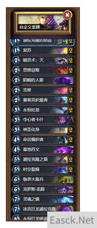当然,起飞斩杀绝不仅仅是徒增卡手概率,一无是处。除了给平平无奇的祈求牧增添一丝别致的乐趣外,还能在对阵后期卡组时,坐拥主动权。如果你手顺,甚至能准时突然带走对手,留下一声惊愕。 而面对快攻,或者紧急情况时,起飞该当咸鱼还是得卖的。 卡组代码: AAECAa0GCL0D75ID2awDha0DjrED47QDyL4DyMADCx7TCpmpA9esA9qsA/KsA/6uA82vA5O6A5u6A6+6AwA= |