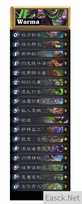 详细答案: 炉石传说世界第一名卡组搭配: 第一节奏瞎卡组搭配