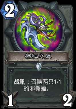 炉石传说棕红之翼怎么样?炉石传说新版本外域的灰烬即将上线,很多玩家都想知道炉石传说棕红之翼厉害吗?下面我就给带来详细介绍,一起来看看吧! 炉石传说棕红之翼卡牌简评 一、卡牌介绍 恶魔猎手武器:棕红之翼 卡牌故事:“这大概是恶魔猎手眼中的棕红色。” 武器消耗:2费 武器效果:【战吼】召唤两只1/1的邪翼蝠。 二、卡牌立绘