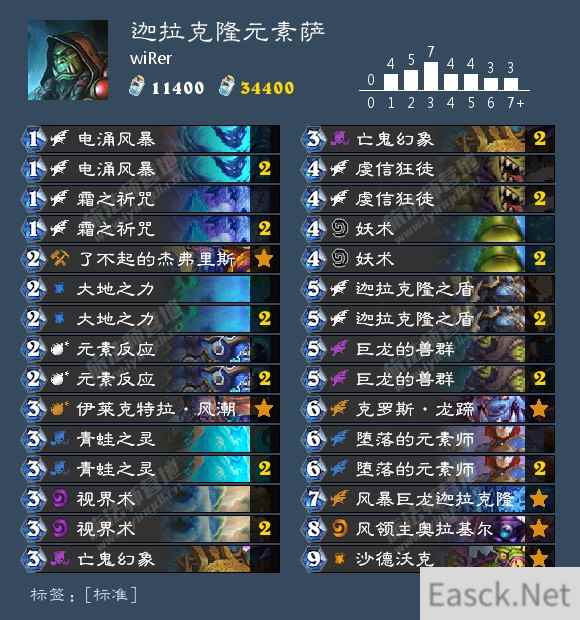 AAECAaoIBiDv9wKZ+wL8owPjtAPTwAMM/gWypDwArP3AoqFA4yFA7atA7etA7mtA/6uA6qvA9CvAwA= 我观察了一下月初快速上传说的卡组,四个服务器很多人都是使用了迦拉克隆萨上月初上分,虽然萨满在前段时间被大砍一刀,但是仍然有很多玩家在微调构筑并使用萨满在天梯下驰骋。wiRer这套又外挂了新的元素体系,因为现在有了蛙灵的配合,基本上都会带上元素之力这张buff来配合祈求出的21突袭。 wiRer在这基础上选择带了更多元素:电涌风暴虽然在卡组里没有过载牌配合但是本身是个113身材的生物,也有机会和亡鬼幻象里的法术打出combo,姐夫也是一张梦想牌,万一打着打着突然亮了呢?奥拉基尔是一个让对手意想不到的斩杀,配合元素之力就是一个炎爆的伤害。现在jk萨的核心框架已经固定,即祈求体系+巨龙的兽群+沙德沃克+风暴巨龙迦拉克隆,准时的7+9依旧摧枯拉朽。wiRer还带了两张元素反应来配合元素链的combo,只要成功触发不管是过到什么牌都是不亏的(祈求牌可以加速祈求,解牌也不会嫌多,过到两个jk就偷着乐吧) |