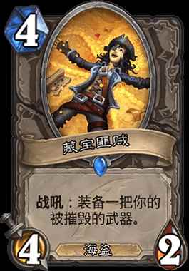 藏宝匪贼是非常有用的补资源(伤害)牌。我们携带的三把刀任意一把(不算升级给的小刀)如果被重新装备上,都可以为我们提供大量的资源或伤害。电缆长枪给的两个跟班很可能会有奇迹,海盗之锚抽上来的海盗帮助继续压缩牌库,奥金斧提供稳定的炎爆术。唯三的问题是:但你使用过很多刀时,不一定能获得你想要的;在你升级用来出刀时可能给你一把113细针;你没有刀时她是白板。所以在我的最终构筑中,只携带了一张藏宝匪贼。