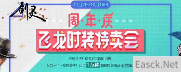 周年庆飞龙特卖会 周年庆时装限时特卖 超多时装令人眼花缭乱 进入11月,《剑灵》将在不久后迎来生日诞辰,此前就已有玩家提前为剑灵生日送上了礼物。官方自然也不甘落后,提前开启了周年庆活动,即日起至12月16日期间,“举办”飞龙时装特卖会,以折扣优惠价限时售卖上万种时装组合,五年期间,游戏中上线的诸多时装、配饰和幻影武器等,这一次玩家可以尽情去挑选,去搭配自己想要的个性。