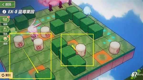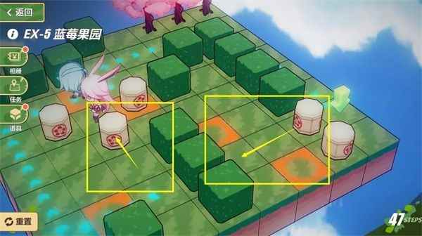 《崩坏3》奇异漂流EX-5~EX-6打法流程 通关主线2-13后,前往2-11樱花树,发现在睡觉的莉莉娅,随后前往EX-5推箱子,方法如下: