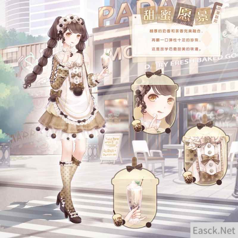 醇厚的奶香和茶香完美融合,再嚼一口弹性十足的珍珠,这是放学后最甜美的味道。 【甜蜜愿景】含正常姿势与特殊姿势,特殊姿势上衣“甜蜜愿景”。海报展示妆容为“俏皮甜心”。 以上就是小编整理带来的《奇迹暖暖》甜蜜愿景套装一览,大家还喜欢吗?更多精彩内容,请点击关注手游网,小编将持续为您更新! |