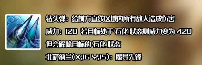 5、钻头弹 物理直线AOE,突刺属性,必须学会的技能,请去北萨纳兰(16,17)寻找魔导先锋强化型进行学习。