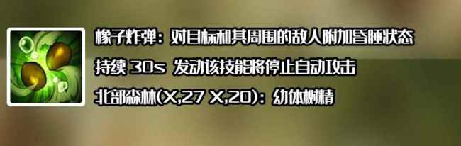 18、橡子炸弹 假面狂欢中会用到的好技能,不推荐去北部林区学习。请去黑衣森林中央林区(22, 16)寻找幼体树精,(27, 16)处也会出现,适当分流以避开人群,降低遇到睿智的可能性。