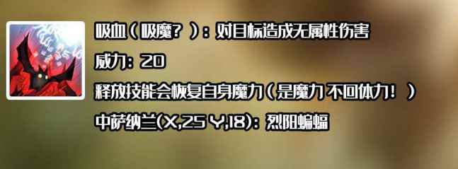 17、吸血 职业任务技能,用来修血的不二选择,拉诺西亚低地(27,16)处的洞穴蝙蝠。技能的优势是伤害低。