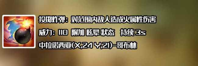 19、投掷炸弹 火属性魔法AOE,中拉诺西亚(24, 21)处的哥布林鱼师和赌徒都会。