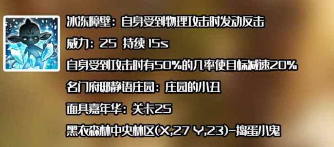 16、冰冻障壁 冰系魔法伤害,黑衣森林中央林区(27, 24)的捣蛋小鬼。实际上,你也可以去假面狂欢的第25关boss处学习。